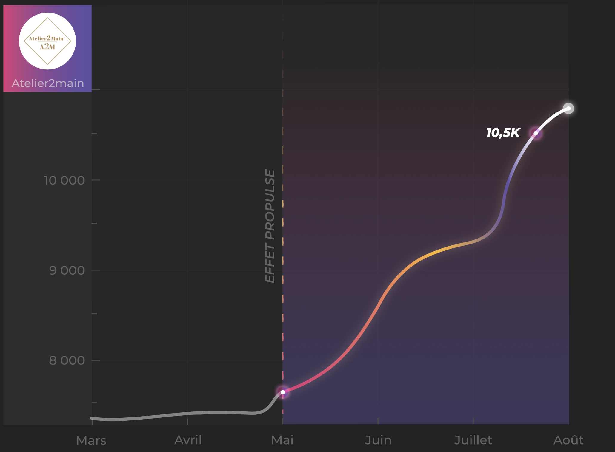 - Croissance des abonnés :Atelier2Main a constaté une croissance régulière de sa communauté, gagnant plus de 500 nouveaux followers qualifiés par mois.